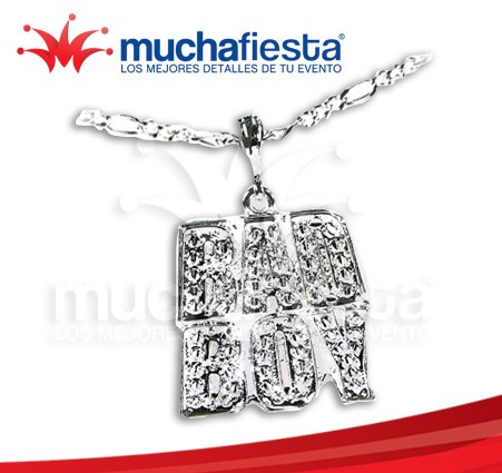 Collar con cadena metálica y leyenda bad boy grande. Color Plata