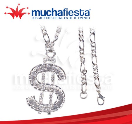 Collar con cadena metálica y signo de dólar mediano. Color Plata